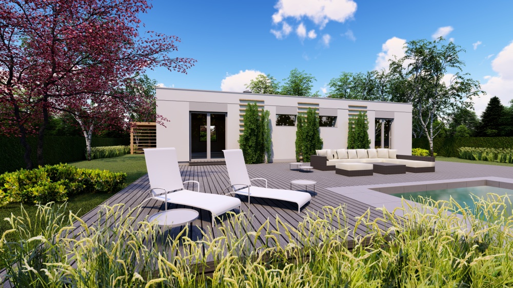 Abies je jednopodlažní rodinný dům pro čtyř až šestičlennou rodinu. Bungalov při své nevelké rozloze poskytuje dostatek prostoru pro dva dětské pokoje, ložnici rodičů a praktické zádveří. Moderním propojením kuchyně s obývacím pokojem vzniká velký prostor pro setkávání celé rodiny. Při návrhu domu byl kladen velký důraz na minimalizaci investičních a současně i provozních nákladů. Díky jednoduchému řešení nosných konstrukcí lze interiér domu velmi dobře adaptovat dle individuálních požadavků. Dům je možné realizovat v zrcadlově převráceném provedení.