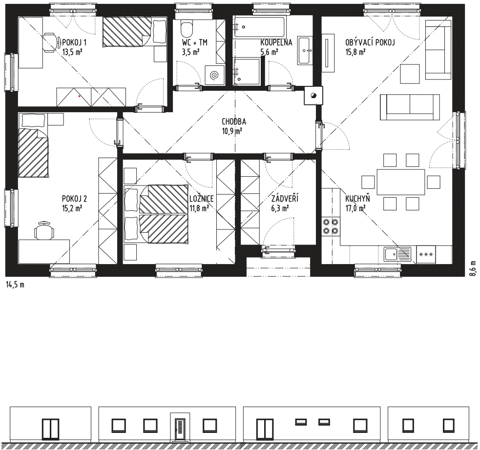 - Vnitřní nosné a ztužující stěny z panelů K-KONTROL®