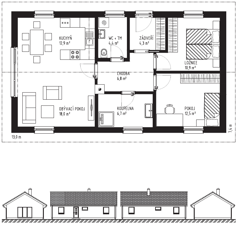 Populus je jednopodlažní rodinný dům pro tří až čtyřčlennou rodinu. Minimalistické provedení pokojů ponechává dostatek místa pro další společné prostory. Koupelna poskytuje dostatek plochy pro umístění vany i sprchy zároveň. Moderním propojením kuchyně s obývacím pokojem vzniká velký prostor pro setkávání celé rodiny. Při návrhu domu byl kladen velký důraz na minimalizaci investičních a současně i provozních nákladů. Díky jednoduchému řešení nosných konstrukcí lze interiér domu velmi dobře adaptovat dle individuálních požadavků. Dům je možné realizovat v zrcadlově převráceném provedení.